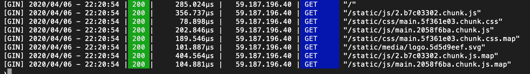 그리고 사진과 같이 어플리케이션 서버에는 로컬호스트(127.0.0.1:3000)에서 어플리케이션 서버에 접근한 것으로 로그가 남습니다. 이는 리버스 프록시를 하며 요청을 보낸 클라이언트 정보가 HTTP header에 남지 않아서 그렇습니다.